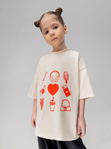 Футболка для девочки из трикотажного полотна "кармеланж" с приспущенным плечом, втачными короткими рукавами, горловиной овальной формы, обработанной втачной планкой и принтом на полочке, выполненным в технике шелкографии. По шву втачивания планки в горловину настрочена отделочная строчка.