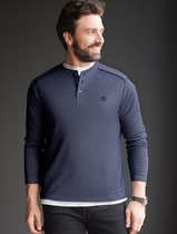 Джемпер хенли из полотна пике с меланжевым плетением с эластаном