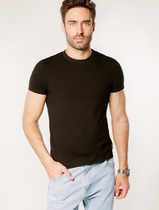 Мужская футболка из кулирки с лайкрой. Черный отложный воротничок с молнией, короткие рукава, две расцветки — голубая и индиго. Размеры от 48 до 62. Имеется возможность заказать данный товар по розничной цене.