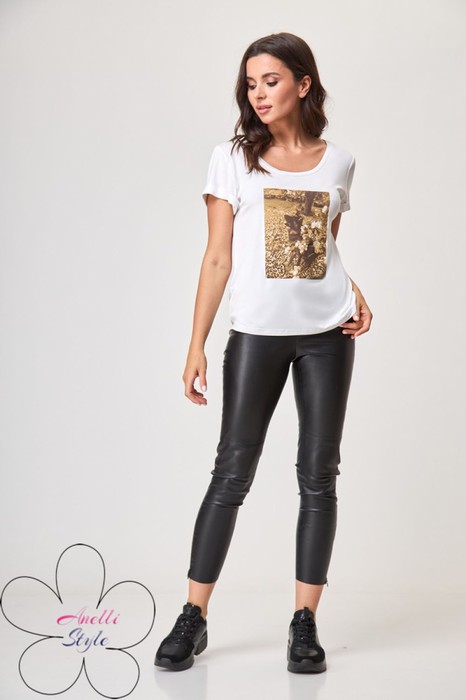 Совместные покупки Сургут Женская одежда Футболки — Футболка ANELLI 1015 белый, принт-