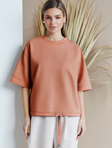 Футболка прямого кроя, выполнена из хлопкового полотна черного цвета. Характеристика: укороченая, прямой свободный крой, горловина овальная, рукав слегка спущен, подплечники, спереди декоративная сборка на элемент-полукольцо . Длина по центру спинки от края горловины 40 см, длина рукава от края горловины 39 см.