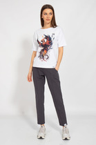 Футболка прямого свободного кроя, выполнена из трикотажного полотна персикового цвета. Характеристика: прямой крой, овальная горловина выполнена из довяза, рукав вточной спущенный, край выполнен из довяза, спинка цельнокраеная, на спинке под горловиной брендированная нашивка "ANNETE". Длина по спинке 68см, длина рукава от края горловины 40см.