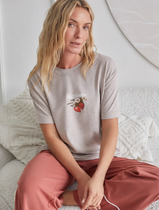 Футболка из гладкокрашеного трикотажного полотна «кулирка с лайкрой» классического покроя, с короткими втачными рукавами, горловиной V-образной формы, обработанной втачной планкой и принтом на полочке.