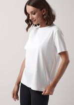 Футболка женская из трикотажного гладкокрашеного полотна «кулирка» с лайкрой, классического покроя, с короткими втачными рукавами и горловиной овальной формы, обработанной втачной планкой.