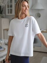 Футболка молодежная из гладкокрашеного трикотажного полотна «кулирка с лайкрой», свободного покроя, с втачными короткими рукавами и вышивкой пайетками на полочке. Горловина овальной формы обработана втачной планкой с отделочной строчкой по шву притачивания.
