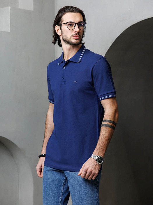 Классическая мужская футболка поло F5, Regular fit (полуприлегающий силуэт), с вышивкой-фирменным логотипом. Выполнена из трикотажного полотна пике (pique). С отложным воротником и короткими рукавами. Застежка-планка обработана пике  контрастного цвета, застегивается на 3 пуговицы.