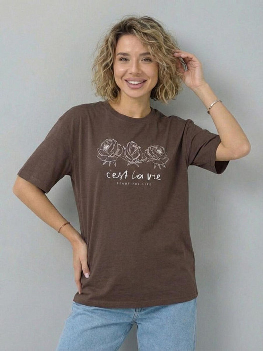 Совместные покупки Сургут Женская одежда Футболки — Футболка F5 164103/12716/Life шоколадный
