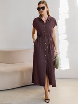 Длинное платье-рубашка с поясом и разрезами изо льна с вискозой