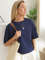 Vilatte Укороченная футболка силуэта овер-сайз D49.090 т.синий