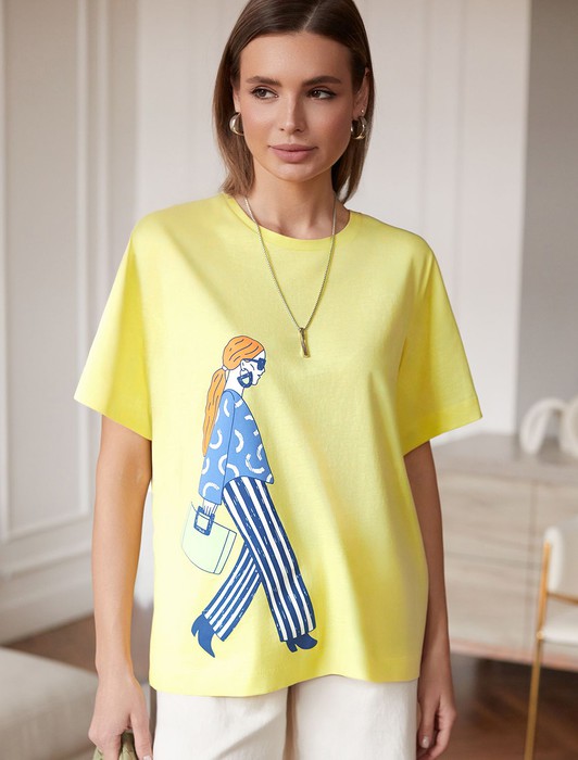 Совместные покупки Сургут Женская одежда Джемперы, свитеры, водолазки — Футболка из премиального хлопка с авторским принтом