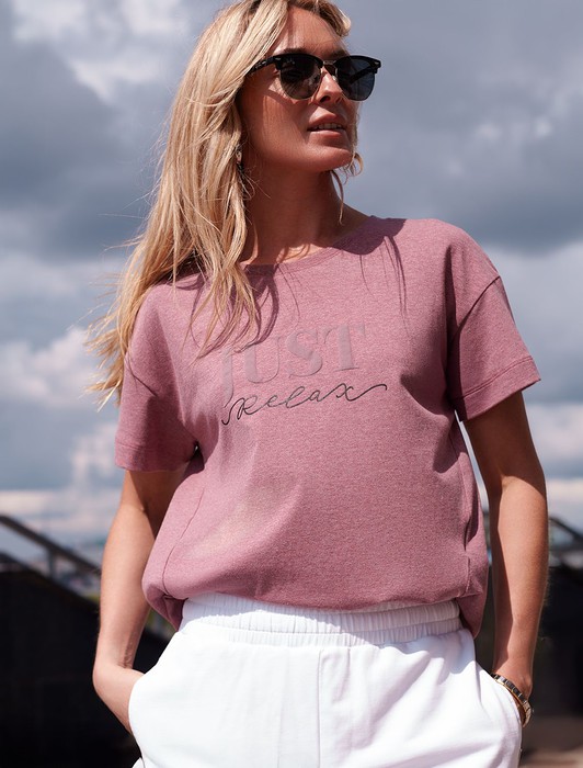 Состав: 92%Хлопок 8%ПУ Плотность: 170 Г/м2Футболка выполнена из премиального хлопка с авторским принтом. Just relax – «Просто расслабься» Свободная модель дополнена двумя вертикальными рельефами, заканчивающиеся разрезами. Мягкий эластичный хлопковый трикотаж гарантирует исключительный комфорт и уют дома. Идеально сочетается в костюме с брюками D44.131