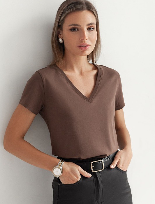Совместные покупки Сургут Женская одежда Костюмы, комплекты — Футболка из премиального хлопка с V-образным вырезом