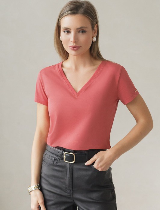 Совместные покупки Сургут Женская одежда Костюмы, комплекты — Футболка из премиального хлопка с V-образным вырезом