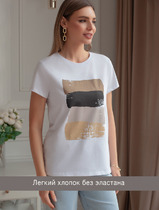 Vilatte Футболка из 100% хлопка с авторским принтом. D49.092 белый_art