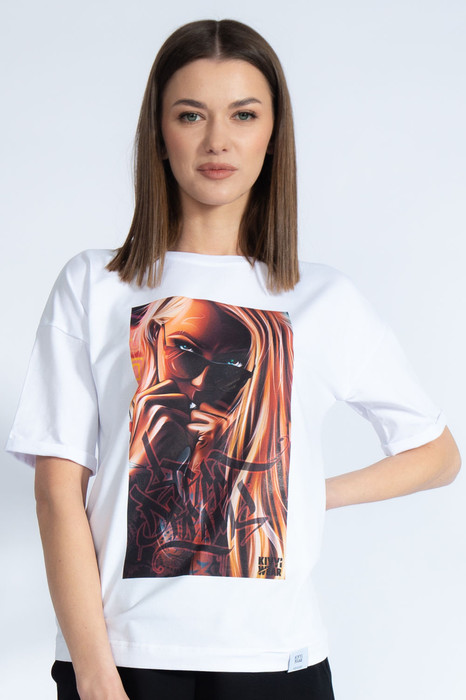 Джемпер свободного кроя. Удлиненный рукав, с подворотом рукава. Принт методом цифровой печати. Ткань кулирная гладь , качество Пенье, плотность 200 г.м2.