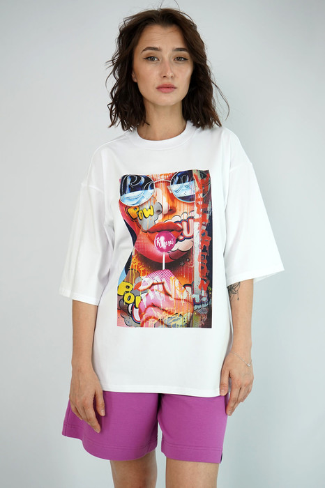 Джемпер свободного кроя. Удлиненный рукав, c завышенной горловиной. Ткань кулирная гладь , качество Пенье, плотность 200 г.м2.