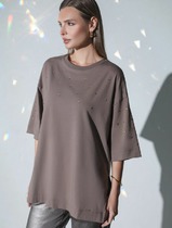 Vilatte Футболка оверсайз с принтом стразами из премиального хлопка с эластаном
