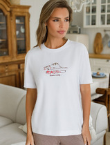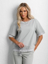 Футболка женская из г/к вискозного полотна со спущенным плечом. Проймы обработаны узкой притачной планкой, горловина - узкой бейкой из основной ткани.
