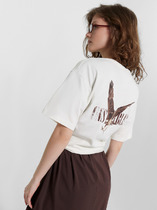 Футболка из гладкокрашеного трикотажного полотна «кулирка» с эффектом «варенки», свободного покроя, горловиной овальной формы, обработанной притачной планкой. Низ рукавов и изделия состоит из двух частей, одна из которых с необработанным краем, другая с подгибкой и соединенных между собой накладным швом.