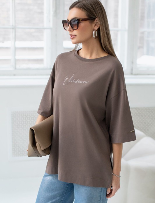 Совместные покупки Сургут Женская одежда Футболки — Футболка оверсайз с принтом стразами из премиального хлопка с эластаном