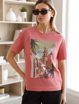 Vilatte Футболка из фактурного полотна с авторским принтом D49.071 терракотовый_