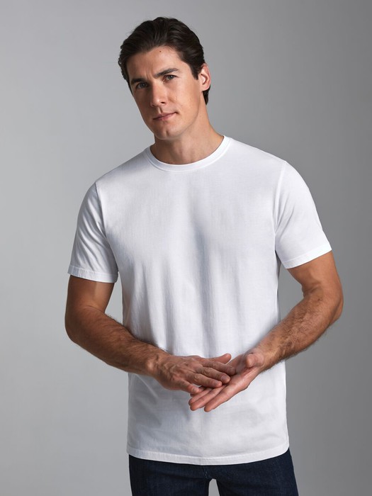 Футболка из хлопкового кулирного полотна. Классическая модель с короткими рукавами.Горловина обработана обтачкой из основного полотна.