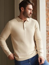 Лонгслив из мягкого фактурного трикотажа с плетеным воротником поло на пуговицах