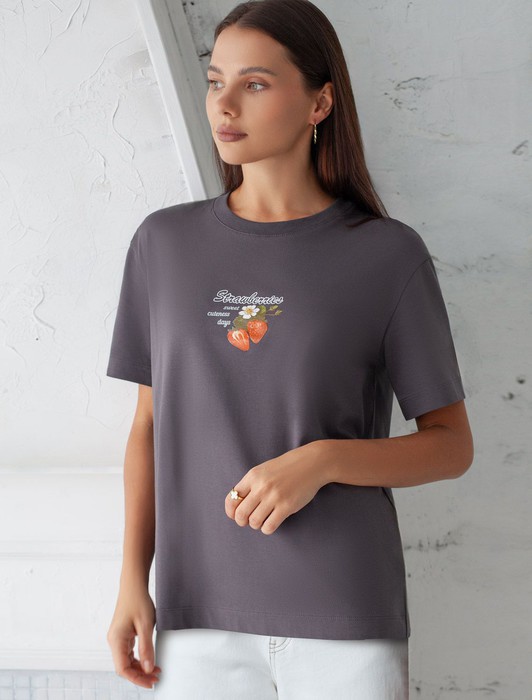 Особое внимание привлекает стильный принт в виде клубники с минималистичной надписью. Перевод надписи: Strawberries sweet summer days - Клубничные сладкие летние дни. Принт выполненны красками с устойчивым покрытием, который добавляет изделию оригинальности и позволяет выразить индивидуальность.
