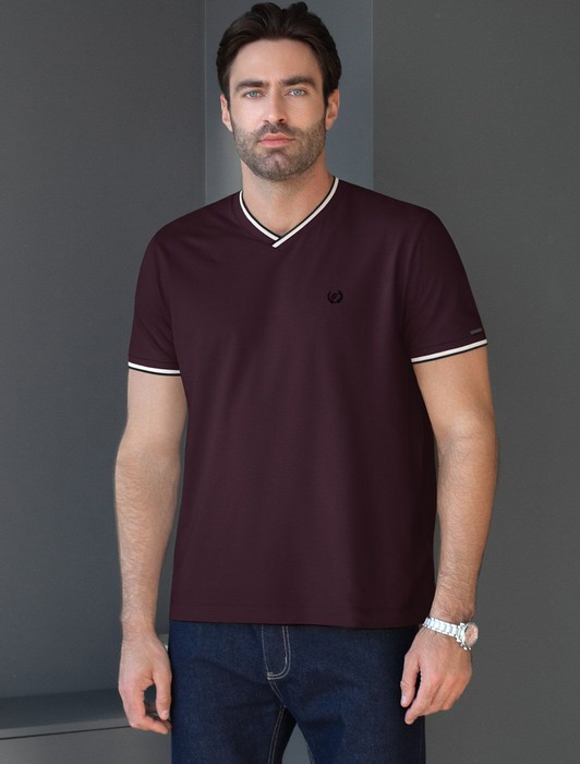 Состав: 95%Хлопок 5%ПУ Плотность: 170 Г/м2Футболка цвета бургунди с аккуратным V-образным вырезом выполнена из премиального хлопка с эластаном плотностью 200 Г/м2. Высококачественный эластичный хлопок обеспечивает мягкость, воздухопроницаемость и идеальную посадку на любую фигуру и размеры, включая 58 размер. Классический прямой крой футболки подчеркивает фигуру, но не сковывает движений. Элегантный небольшой V-образный вырез с контрастной полосой визуально удлиняет шею, а минималистичная вышивка на груди в виде логотипа бренда добавляет изысканности и индивидуальности, не перегружая образ. Эта базовая футболка - идеальный баланс комфорта и стиля для современного мужчины, легко сочетается с разными низами, создавая образ от кэжуал до более элегантного. Стильная футболка подходит как для повседневной носки, так и для создания более нарядных образов.