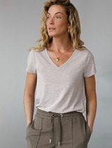 Футболка молодежная из гладкокрашенного полотна «кулирка с лайкрой», свободного покроя, со спущенной линией плеча, втачными рукавами длиной до локтя, горловиной овальной формы, обработанной втачной планкой. Изделие дополнено декоративной нашивкой, в боковых швах выполнены разрезы.
