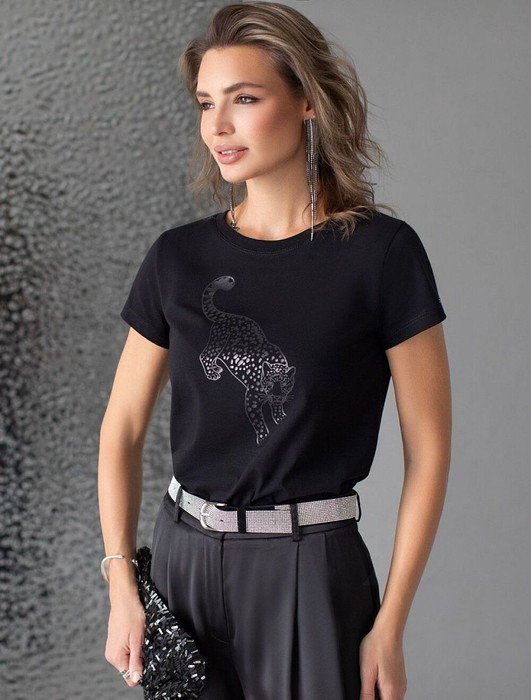 Совместные покупки Сургут Женская одежда Футболки — Футболка Vilatte D49.123 черный_леопард