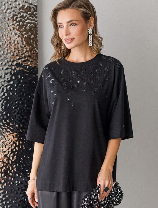 Совместные покупки Сургут Женская одежда Футболки — Футболка Vilatte D49.125 черный_пайетки