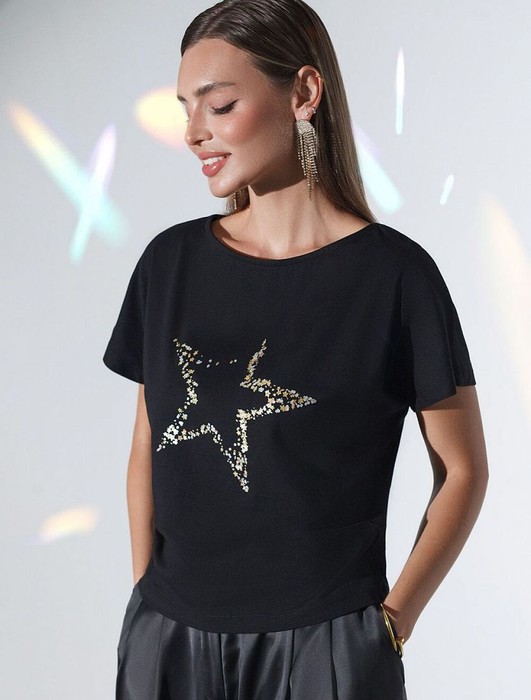 Совместные покупки Сургут Женская одежда Футболки — Футболка Vilatte D49.133 черный_star