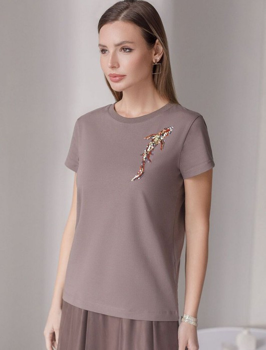Совместные покупки Сургут Женская одежда Футболки — Футболка Vilatte D49.135 кофейный_рыба