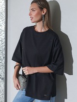 Свободный крой футболки дарит удобство и не стесняет движений, что делает ее идеальной для повседневной носки или активного отдыха, подчеркивает современный взгляд на моду. На рукаве металлический логотип бренда. Подойдет девушкам и женщинам на любую фигуру, вы будете чувствовать себя в ней уверенно и комфортно. Отлично впишется в гардероб благодаря универсальному дизайну, который легко сочетать с джинсами, шортами или спортивными брюками
