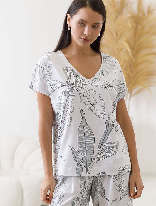 Совместные покупки Сургут Женская одежда Футболки — Футболка Vilatte D49.153 белый-черный_листья