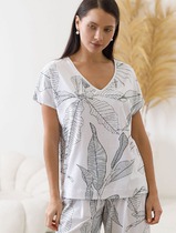 Футболка Vilatte D49.153 белый-черный_листья