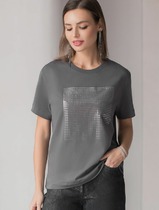 Vilatte Нарядная футболка с принтом фольгой из премиального хлопка с эластаном D