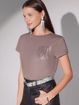 Футболка женская из гладкокрашенного трикотажного полотна «кулирка», свободного силуэта, с боковыми швами, переходящими в рельефы, в правом соединительном шве выполнен разрез. Горловина овальной формы обработана втачной планкой и дополнена декоративным элементом.