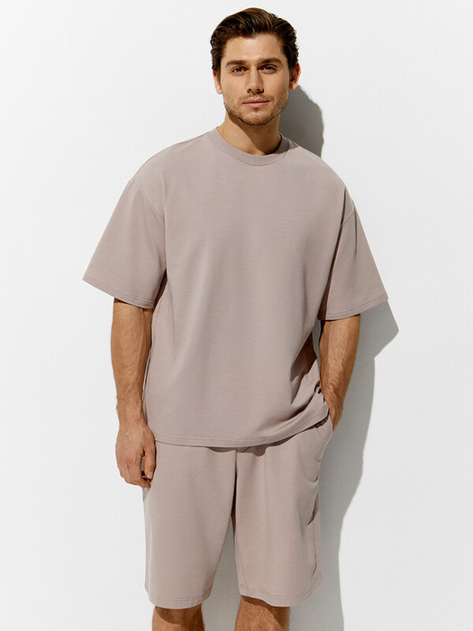 Мужская футболка OVERSIZE с коротким  рукавом и круглым вырезом. Горловина обработана обтачкой из трикотажного материала кашкорсе.Выполнена из высококачественного двухниточного футера. В составе трикотажного материала мягкий хлопок, который отлично пропускает воздух, приятно ощущается на теле и подходит для нежной и чувствительной кожи. Добавление эластана обеспечивает сохранение формы.