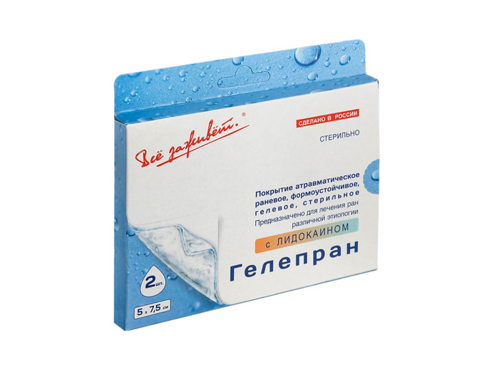 Гелепран с лидокоином покрытие атравматическое раневое 2 шт 5*7.5 см