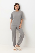 Халат женский на пуговицах с V-образным раскрытием воротника, коротким рукавом и карманами