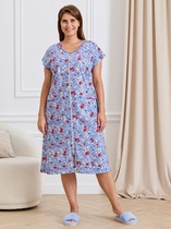 Халат молодежный из гладкокрашеного трикотажного полотна, на запахе, с короткими втачными рукавами, отделанными кружевом по нижним срезам, со съемным поясом, завязывающимся на талии и продетым в две шлевки в ботовых швах. Бортовые срезы и горловина обработаны притачной планкой.