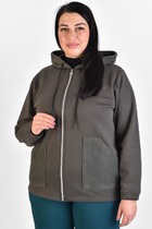 Халат из кулирки, на молнии. Длина по середину бедра, короткий рукав. Сбоку по накладному карману в виде кошечек. Три цветовых варианта — голубой, розовый и фиолетовый. Размерный ряд от 42 до 52. Есть возможность приобрести данный товар в розницу.