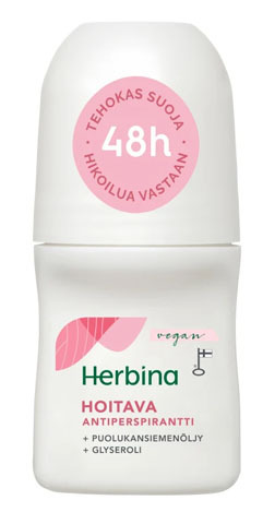 Ухаживающий антиперспирант Herbina обеспечивает эффективную защиту от пота. Предотвращает образование неприятных запахов на коже. Ухаживающая формула содержит масло семян липы, увлажняющий глицерин и аллантоин, которые помогают сохранить кожу подмышек мягкой. Аромат свежей ягоды.