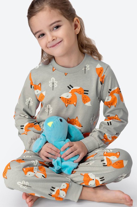 Мимими-эффект гарантирован! Светло-серая пижама с ярким принтом Лисички для девочки поднимает настроение с первого взгляда и создаёт уют с первой минуты. Детская пижамка — идеальный вариант на каждый день.