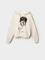 Худи из трикотажной хлопковой ткани (двунитка). Рукав реглан. Низ рукава обработан притачной манжетой. Низ изделия оформлен притачным поясом. На рукавах и капюшоне расположена печать. Вырез горловины круглый, обработан капюшоном.