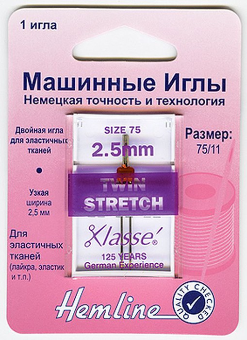 Иглы для бытовых швейных машин стрейч двойные № 75