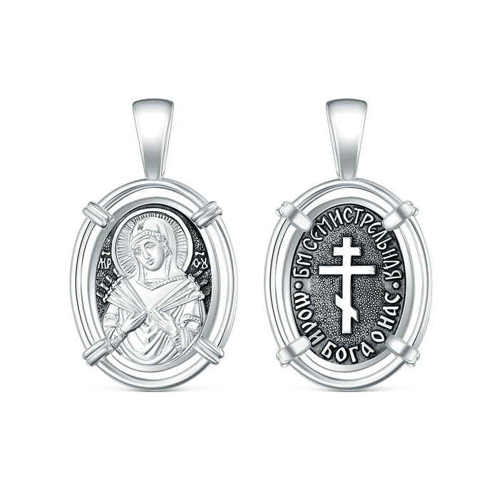 Совместные покупки Сургут Ювелирные украшения и бижутерия Подвески — Икона нательная из чернёного серебра - Семистрельная Божья Матерь 925 пробы К3-5