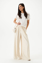 Брюки прямого свободного кроя имеют на талии мягкую эластичную широкую резинку.